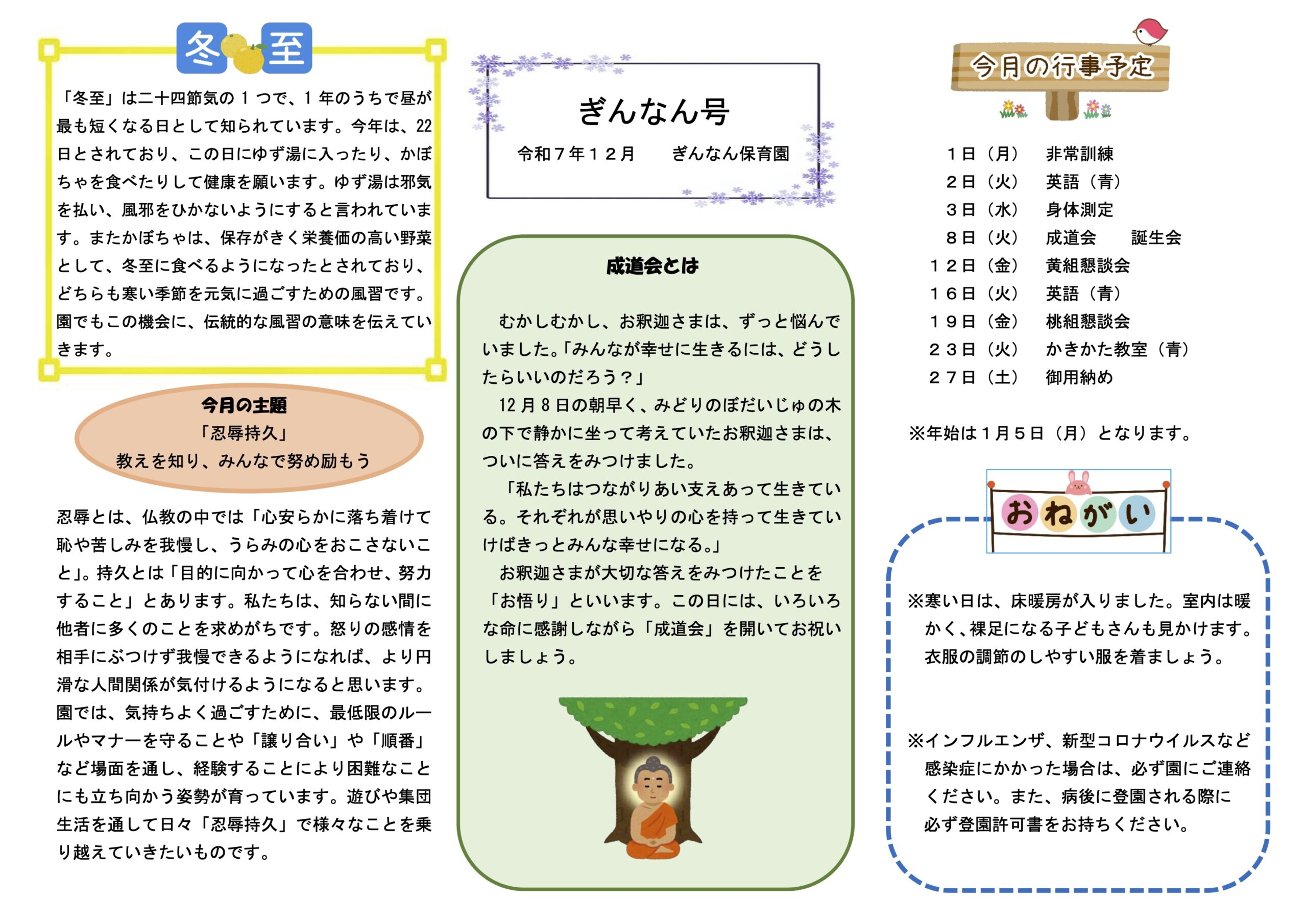 令和7年12月 園だよりとなります。