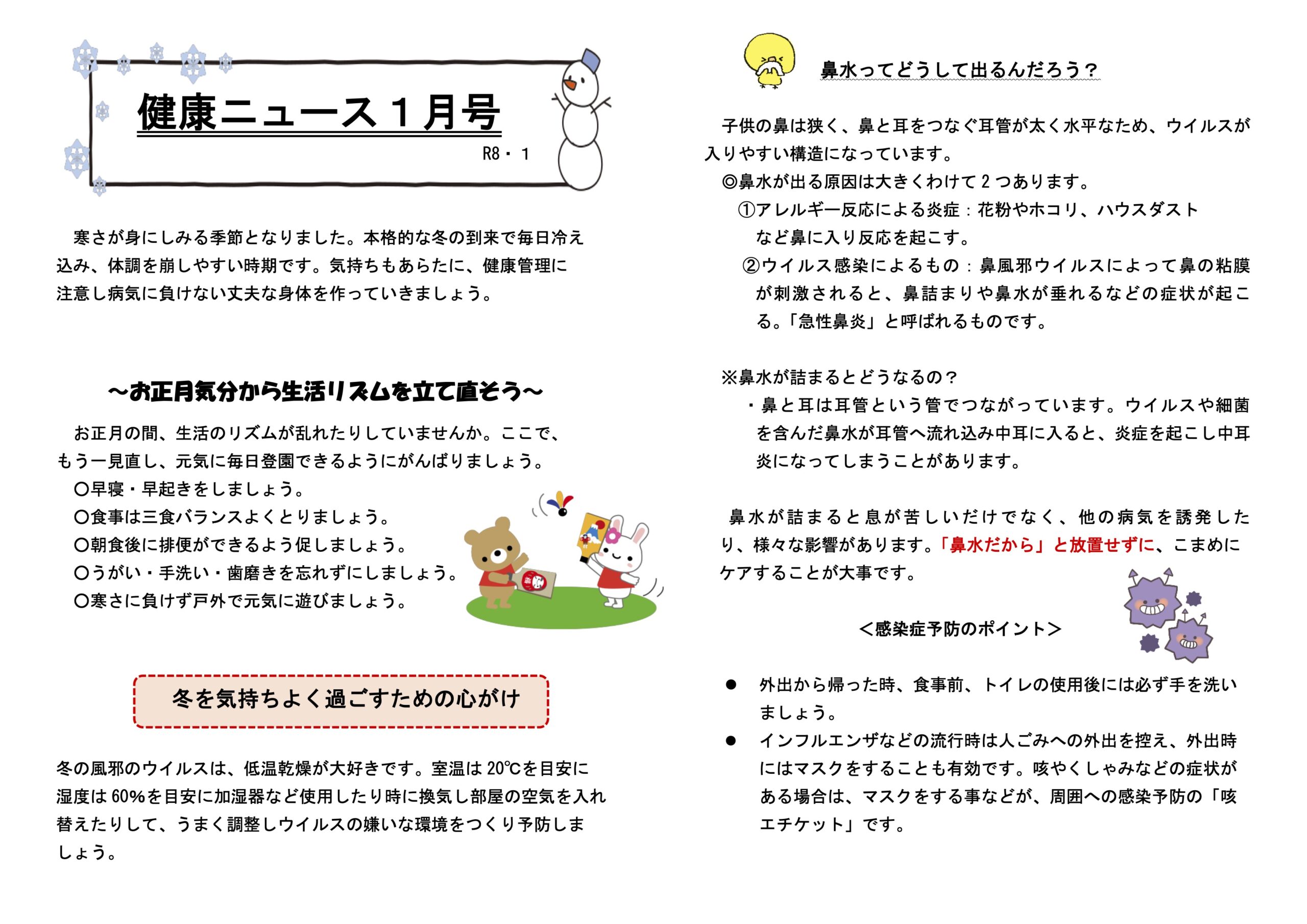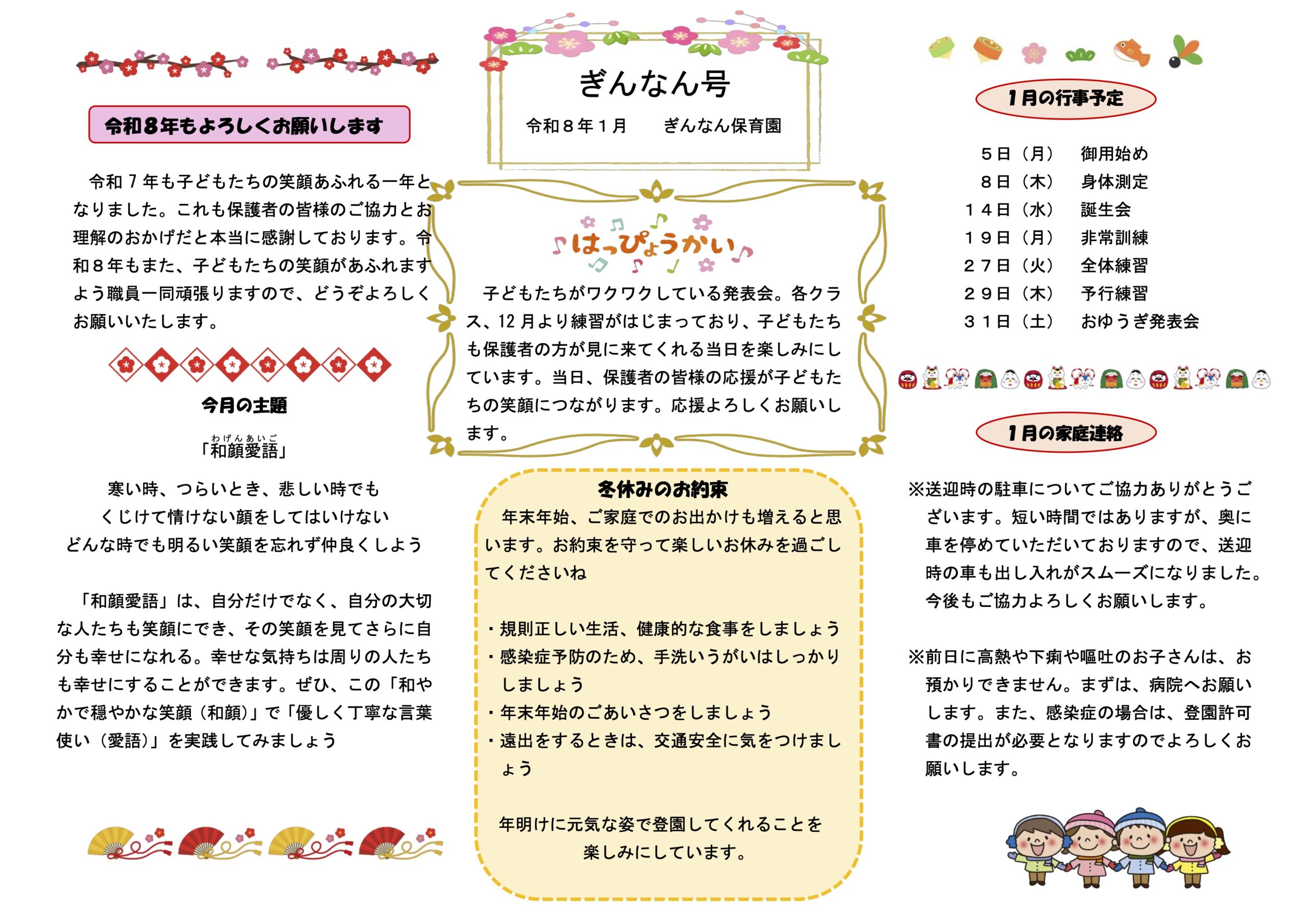 令和8年1月 園だよりとなります。